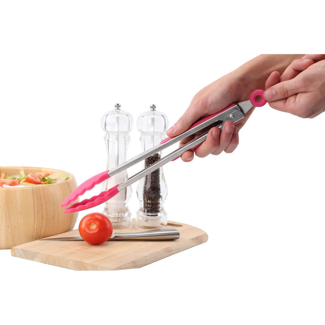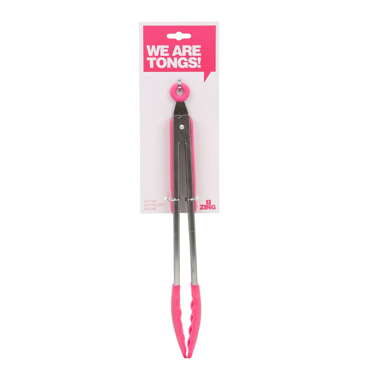 Zing Hot Pink Silicone And Stainless Steel Tongs